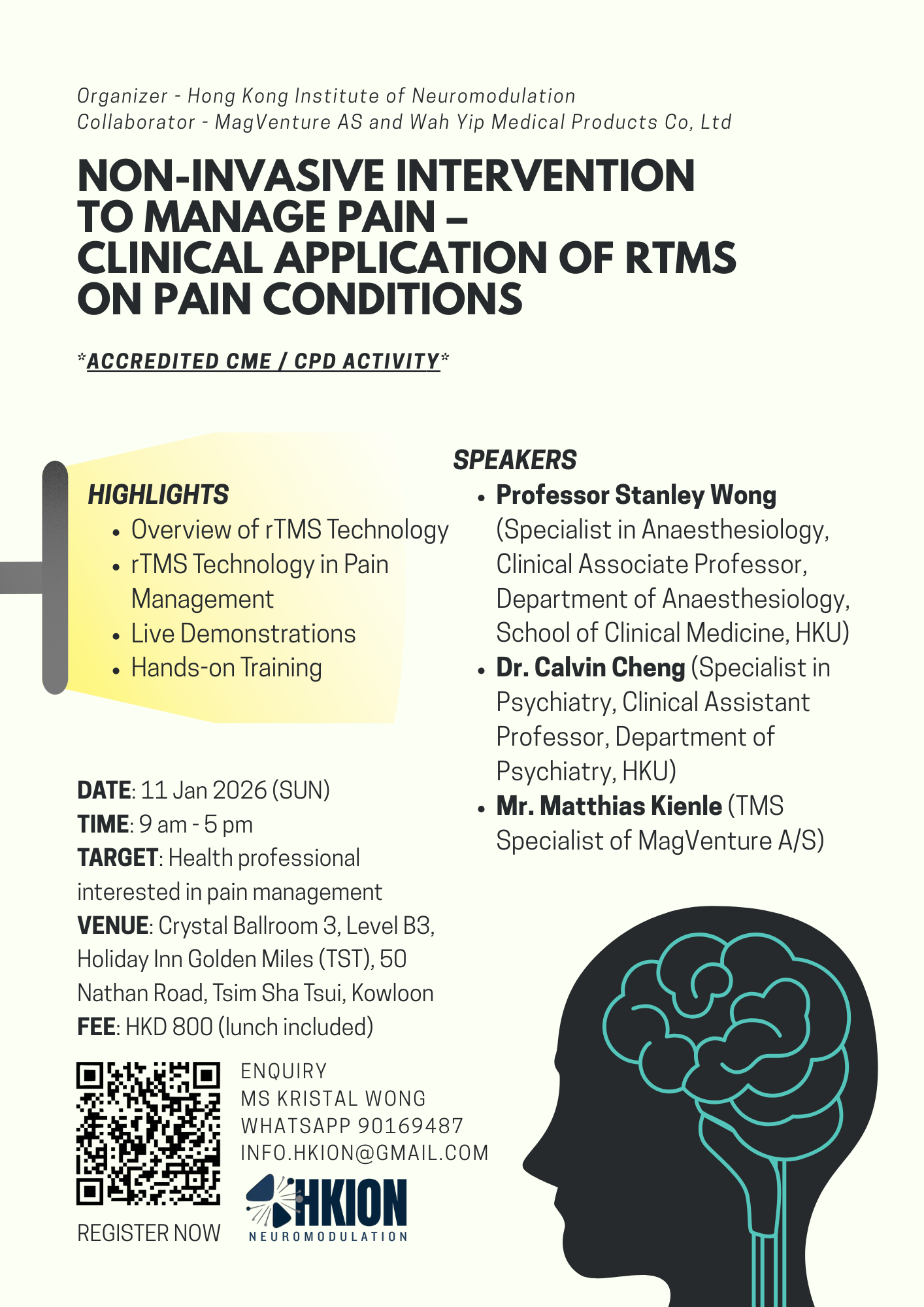 The rTMS on Pain Conditions workshop was successfully held on January 11, 2026! We would like to thank Wah Yip Medical Products Co, Ltd. and all participants for their valuable...